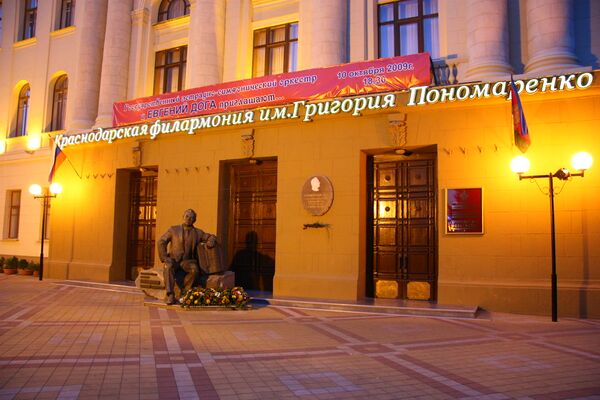 В 2005 году ко дню города памятник Г. Пономаренко был перенесен ко входу в Краснодарскую филармонию имени Григория Пономаренко. Памятник стоит на возвышении, на пешеходной части улицы.