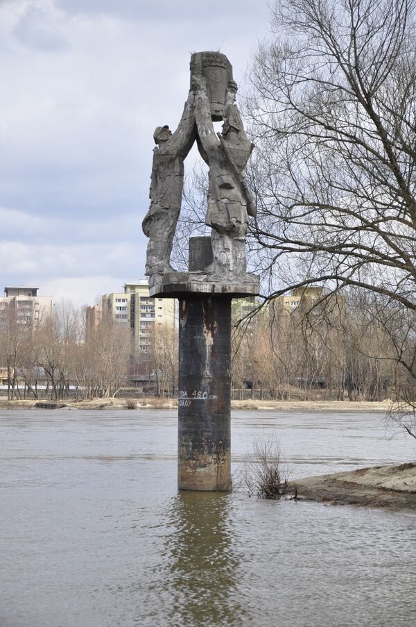 Третьей частью является железобетонный столп при въезде в порт, который вбит в дно реки. На нём установлены скульптуры трёх солдат, забивающих сваю для строительства моста.