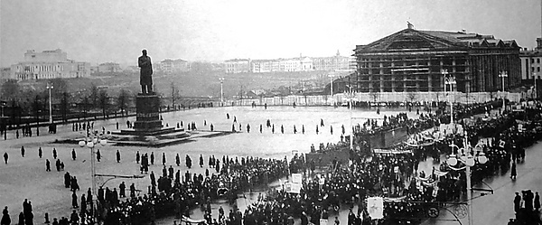 Бронзовая скульптура была отлита по заранее подготовленной модели памятника, вылепленной из глины. Памятник был открыт 21 сентября 1952 года. Центральная площадь была заполнена полностью — собрались несколько десятков тысяч человек.