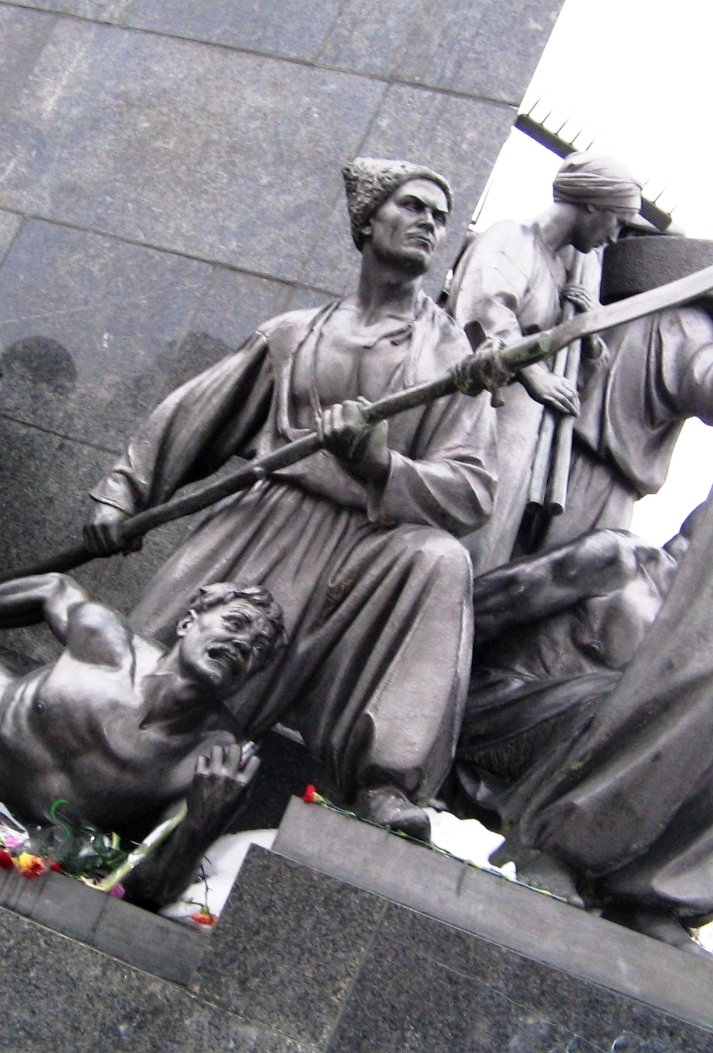 - скульптура «Связанный запорожец» — одна из статуй, которые передают патриотичный, многогранный характер героя, воплощает народную силу и величие, скорбь и боль;