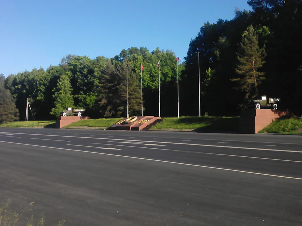 Специальный знак при подъезде к мемориалу призывает проезжающих почтить память погибших воинов-водителей сигналом клаксона.