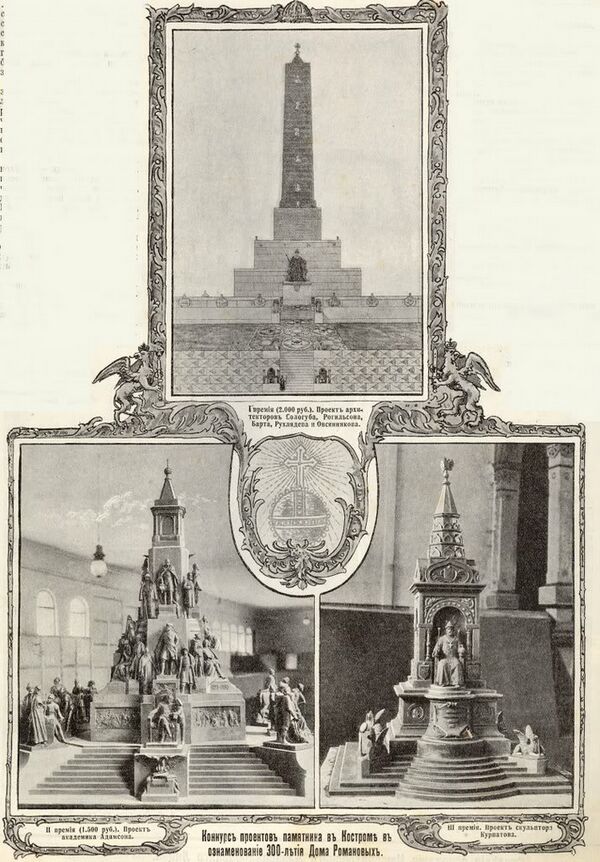 …Наиболее соответствующим важности и историческому значению события было бы сооружение величественного памятника на берегу Волги на месте бывшего Кремля, в стенах коего находился осадный двор бояр Романовых.