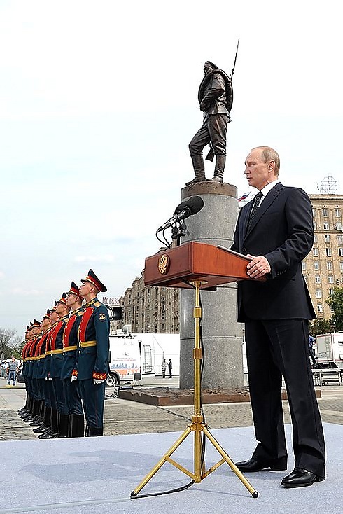 «Ровно век назад Россия была вынуждена вступить в Первую мировую войну. И сегодня мы открываем мемориал её героям — российским солдатам и офицерам. Открываем на Поклонной горе, которая хранит благодарную память о ратной славе русского воинства. Обо всех, кто на разных этапах истории государства российского защищал его независимость, достоинство и свободу», — сказал Владимир Путин[11].