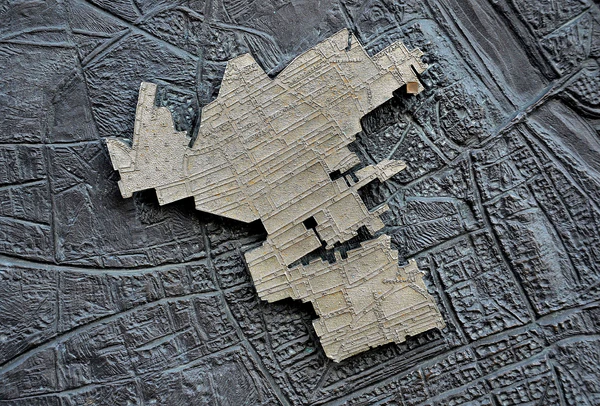 - табличка из бронзы размером 60 × 60 см, на которой показаны границы гетто в самых дальних его пределах и довоенная сетка улиц на фоне пластической карты Варшавы вместе с отмеченным пунктом, в котором упоминается место.