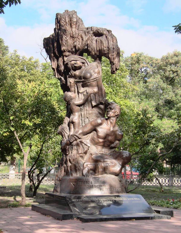 Монумент состоит из фигур матери, тянущего к ней руки ребёнка и защищающего их мужчины, руки которого связаны веревкой. Надпись на памятнике гласит: «Правда забвению не подлежит»[1].