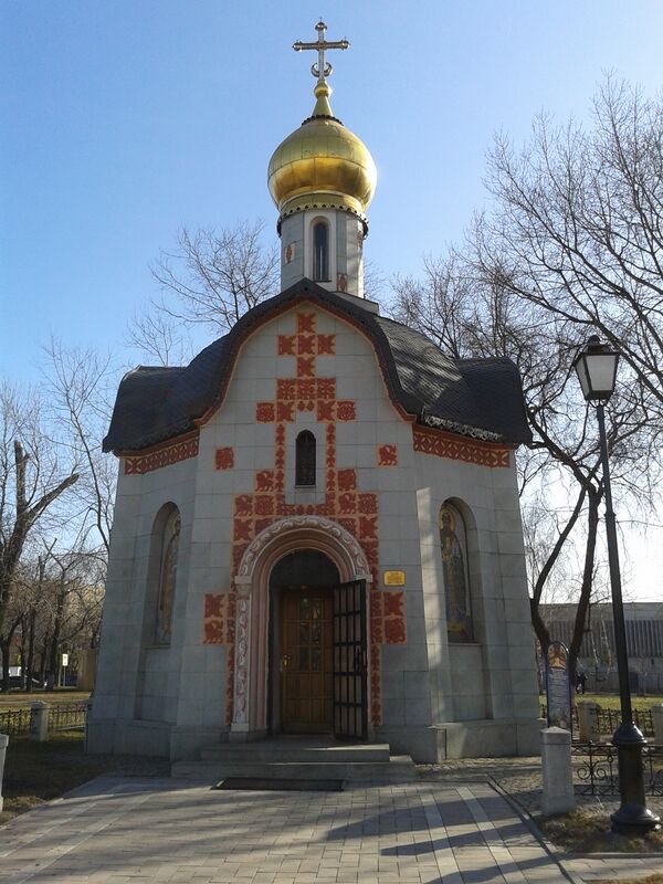 Напротив монумента расположена вновь воссозданная часовня святого благоверного князя Даниила Московского с памятным Крестом, которая была снесена в советское время (1920). Часовня была освящена патриархом Московским и всея Руси Алексием II 17 марта 1998 года.