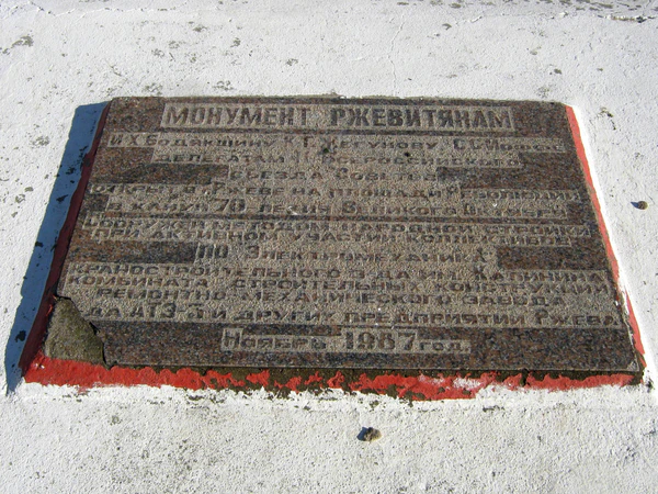 Позади памятника размещена аннотационная доска, в тексте которой краеведы выявили две грамматические ошибки: во-первых — фамилия Кондрата Жигунова написана там через «е», во-вторых — инициалы Иоффе прописаны как «С.С.», хотя в действительности его звали «Шевелев Соломонович» (соответственно «Ш.С.»)[2].