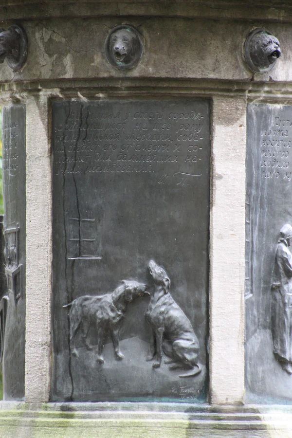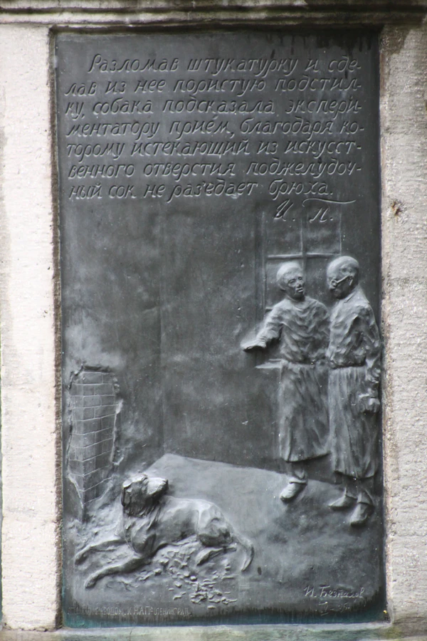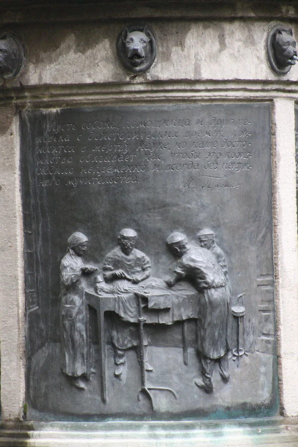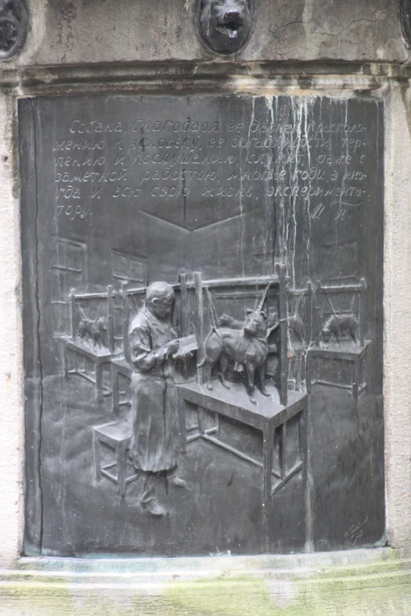 «Сфотографировать бы этот памятник да послать им. Это апофеоз собаки! Благодарность человечества. Раз я поставил памятник собакам, считаю, что мои счеты с ними покончены», — И. П. Павлов членам правительственной комиссии по подготовке конгресса, вспоминая о встрече с противниками вивисекции в Лондоне.