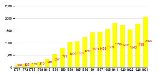 | 1767[3] | 1773[3] | 1788[3] | 1798[3] | 1816[3] | 1834[3] | 1850[3] | 1859[3] | 1865[3] | 1886[3] | 1891[3] | 1897[3] | 1905[3] | 1911[3] | 1920[3] | 1922[3] | 1926[3] | 1931[3] | 2002[6] |