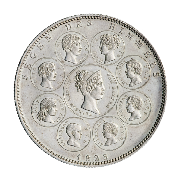 В 1841 году была отчеканена серебряная монета в память бракосочетания наследника престола. Вес монеты — 20,73 г, из них чистого серебра — 18 г. Диаметр — 35,5. На монете присутствовала подпись медальера «РЕЗАЛЪ ГУБЕ»[12].