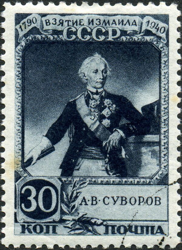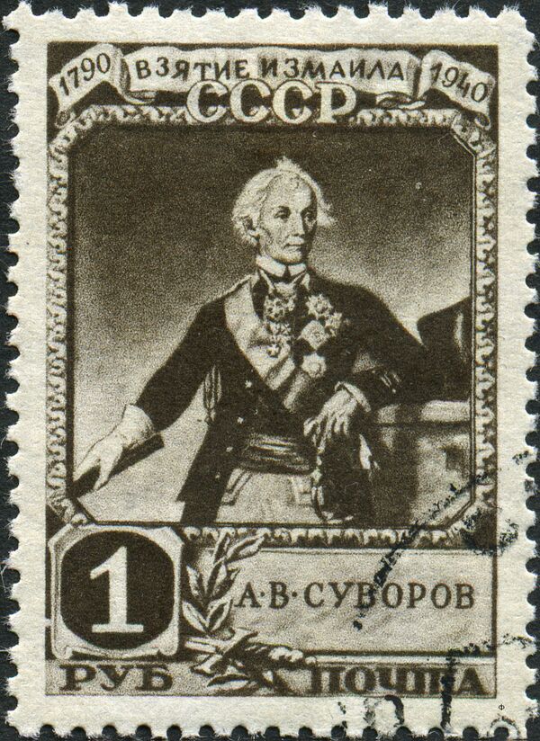 На первой марке из выпущенной в 1941 году в честь 150-летия взятия войсками под командованием А. В. Суворова турецкой крепости Измаил серии почтовых марок СССР (№ 802—805) показан эпизод штурма крепости, портрет полководца и его высказывание «Смерть бежит от сабли и штыка храбрых»[34].