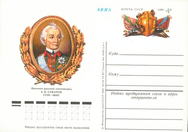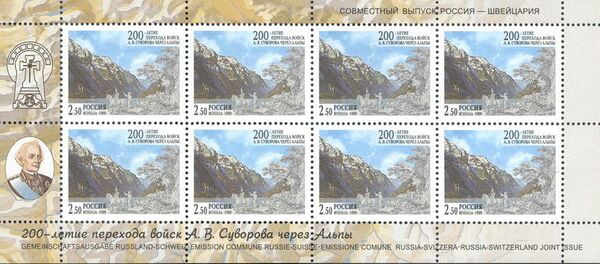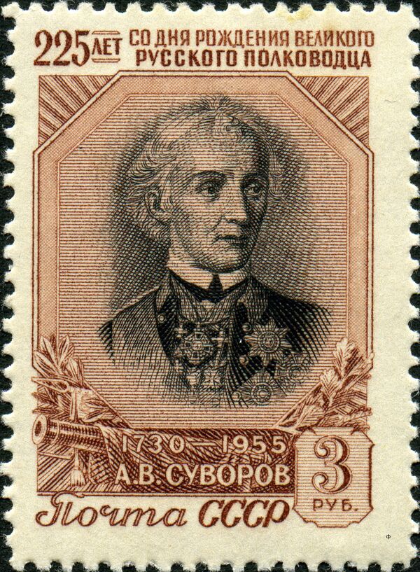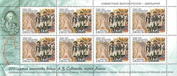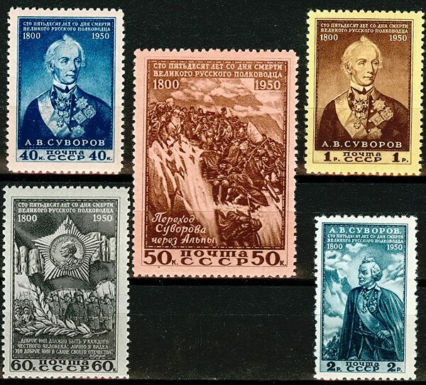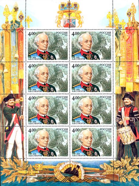 В СССР и России, а также иностранных государствах — в Швейцарии и Лихтенштейне — были выпущены почтовые марки, блоки и конверты с изображением полководца[33]: