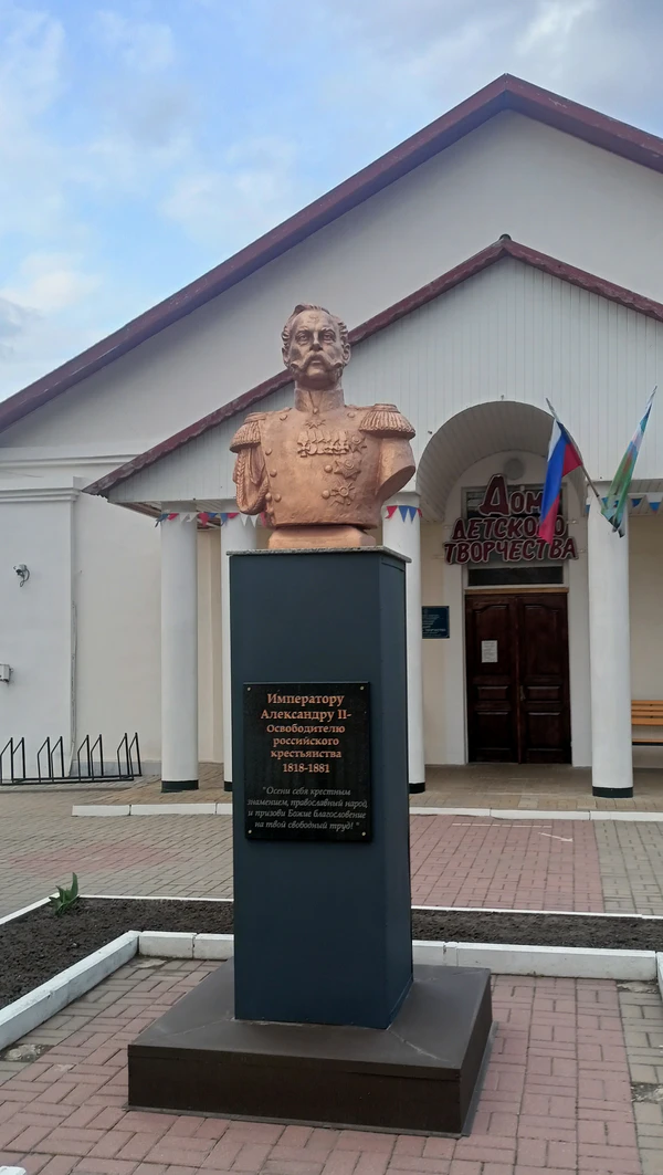 «Александр II освободитель (1818-1881). Император всероссийский провёл Великие реформы, в том числе отметил крепостное право(1861), завершил многолетнюю Кавказскую войну (1817-1864), начал хозяйственное освоение Черноморского побережья Кавказа»