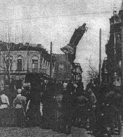 Неоднократные попытки толпы осквернить памятник начались сразу после Февральской революции 1917 года. В марте 1918 года «ненавистная» скульптура была, наконец, обёрнута и скрыта под рогожей, а в июле и вовсе сброшена с пьедестала. Сначала на её место была поставлена скульптура «Серп и молот», а в 1923 году — памятник В. И. Ленину. Дальнейшая судьба скульптуры точно неизвестна; пьедестал памятника сохранился до наших дней[33]. В 2009 году над воссозданием скульптуры Александра II начал работать Альберт Серафимович Чаркин; открытие памятника изначально планировалось в 2011 году, к 150-летию отмены крепостного права[34], но из-за недовольства и массовых протестов коммунистов, не желающих перенести памятник Ленину, воссоздание памятника решено было отменить.