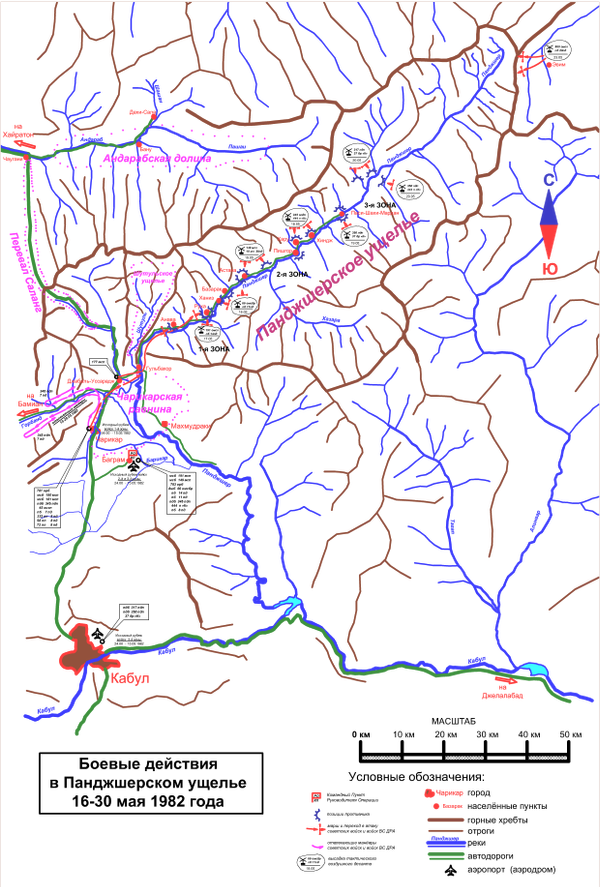 - 3-я зона — высадка 18 мая тактического воздушного десанта на вертолётах на господствующие вершины в Панджшерском ущелье на глубину от 40 до 75 километров и 20 мая на глубину до 100 километров.