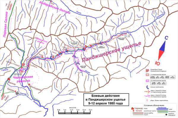 - Панджшерская операция 9-12 апреля 1980 года — задействовано около 1000 человек. Первые боевые действия советских войск в Панджшерском ущелье, в истории Афганской войны. По своей сущности и масштабам, данное событие являлось рейдом;