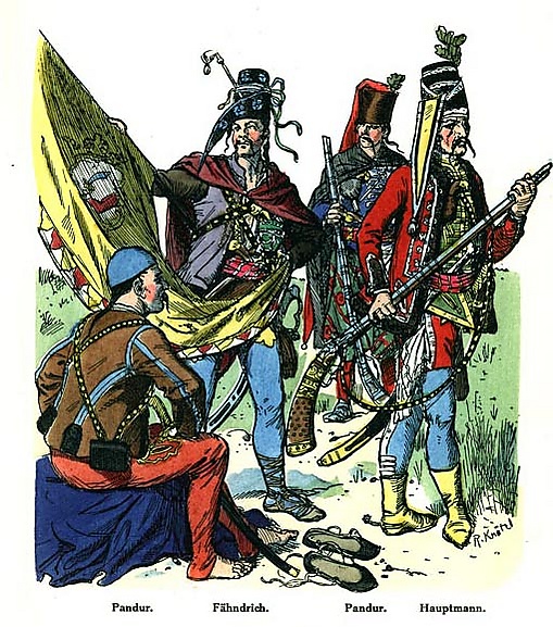 Самое первое упоминание о пандурах относится к 1742 году, когда они принимали участие в походе на Баварию под командованием полковника Франца Серафа фон дер Тренка[7].