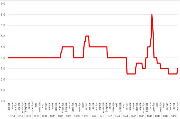 В 1836 году после продолжительного периода устойчивых процентных ставок Банк Англии принял решение ужесточить денежно-кредитную политику. Причиной тому являлось снижение объёма его металлических резервов, которые были израсходованы на поддержание курса фунта стерлингов к золоту в связи с ростом импорта. Совет директоров Банка Англии решил постепенно поднимать процентную ставку по своим операциям до 5 %, что должно было привлечь на рынок Лондона иностранный капитал и пополнить резервы золота. Учитывая тесные связи между экономиками США и Великобритании, банки в Соединенных Штатах также были вынуждены повысить процентные ставки по кредитам[6]. Это привело к сокращению кредитного предложения и способствовало снижению цен на землю, которая служила обеспечением по кредитам.