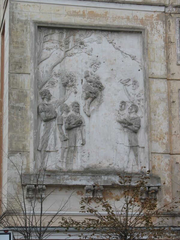 Панно, выполненные на внешних стенах здания из цветных плиток или в технике фрески, называют иногда муралями.