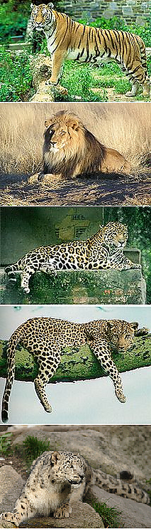 Домен: Царство: Подцарство: Без ранга: Без ранга: Тип: Подтип: Инфратип: Надкласс: Клада: Клада: Класс: Подкласс: Клада: Инфракласс: Магнотряд: Надотряд: Клада: Клада: Грандотряд: Отряд: Подотряд: Семейство: Подсемейство: Род: Пантеры |