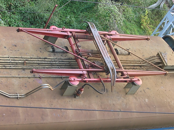 - Если машинист при движении заметит неисправность контактной сети, угрожающую поломкой пантографа (например, обрыв струны подвески контактного провода), у него будет больше времени на опускание заднего пантографа, чем переднего (на операцию по отпусканию пантографа уходит 5-15 секунд).
