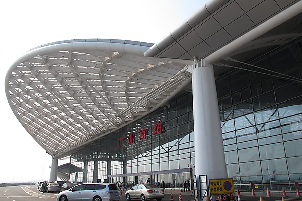 Главным транспортным узлом является Южный вокзал Гуанчжоу, который обслуживает поезда скоростных линий Гуанчжоу — Шэньчжэнь — Гонконг, Гуйян — Гуанчжоу, Наньнин — Гуанчжоу, Пекин — Гуанчжоу и Гуанчжоу — Чжухай. Южный вокзал открылся в 2010 году, он имеет 13 двухсторонних и 2 боковые платформы для поездов и одну двухстороннюю и 2 боковые платформы метро.