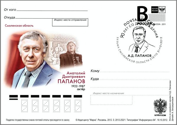 - Папанов в кадре из фильма «Живые и мёртвые» изображён на почтовой марке СССР 1966 года.