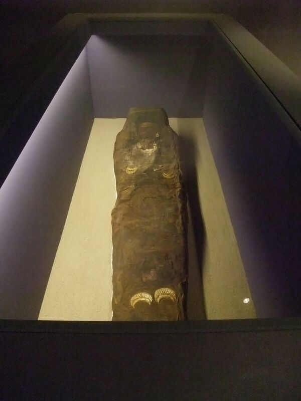 - Картонажи мумий. После греческого завоевания Египта эллины заимствовали египетский погребальный обряд и мумификацию, но изменили их. Вместо погребальных пелен и бинтов мумия помещалась в особый каркас — картонаж. Картонажи изготавливались из нескольких слоёв склеенных папирусов, которые сверху покрывались гипсом и покрывались росписью. Папирусами могли заполнять и внутренние свободные пространства саркофага и даже самих мумий. Одним из наиболее примечательных источников папирусов являются картонажи мумий священных крокодилов, впервые обнаруженные в Тебтунисе, их могли заворачивать в греческие папирусы[60]. Для картонажей использовались ненужные папирусы, чаще всего это были документальные тексты, приобретаемые у старьёвщиков; но встречались и литературные тексты[61]. Иногда из мумий извлекают целые архивы, в том числе из местностей, в которых папирусы другим путём не сохранились. Таковы архивы римского юриста и владелицы папирусных плантаций, предположительно, из Александрии[62][63]. Поскольку не сохранилось ни одного папируса, непосредственно найденного в Александрии, эти находки имеют первостепенное значение[64].