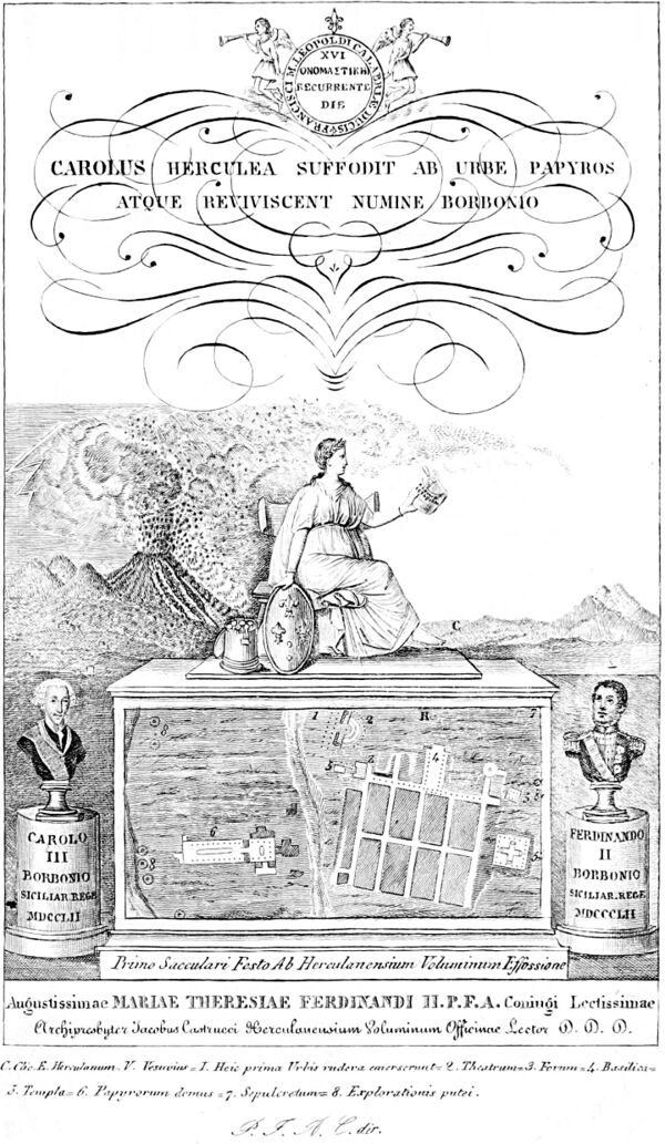 Иной была реакция современников на находки 1752—1754 годов в Геркулануме в так называемой «Вилле Папирусов»; немалую роль в популяризации находок сыграл Иоганн Винкельман. Участник раскопок — художник Камилло Падерни (Camillo Paderni) — в ноябре 1753 года официально объявил о находке большого числа обугленных папирусов на древнегреческом языке, которые не поддавались прочтению[82]. Падерни первым попытался развернуть свитки и оценить их содержимое, но его методы привели к уничтожению 142 свитков[83]. Далее свитки были переданы ватиканскому эллинисту аббату Пьяджо (Antonio Piaggio), который разворачивал свитки буквально по одной строке и за 40 лет работы смог обработать 18 свитков разной длины, но так и не смог прочитать их до конца, а также оставить неповреждёнными[84]. В 1802 году в работу включился британский священник Джон Хейтер; усовершенствовав методы Пьяджо, за 4 года он развернул около 200 папирусов, скопировав 98 из них. Часть оригиналов из Геркуланума поступила в Бодлеанскую библиотеку[85]. Оказалось, что геркуланумская библиотека была специализированной — большинство книг были посвящены стоической философии; примерно две трети прочитанных текстов принадлежат Филодему[86]. Из-за огромного числа проблем с прочтением и сохранением находок их публикация далеко не закончена, а первый сводный каталог увидел свет только в начале 1980-х годов[81].