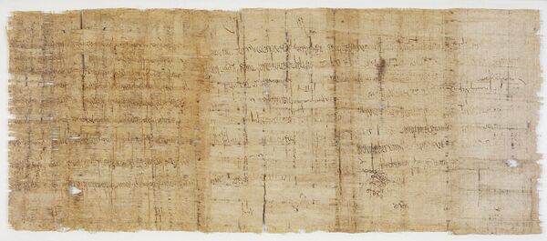 В 1778 году феллахи обнаружили близ Гизы 50 папирусных свитков в глиняном сосуде. Находки были предложены базарному торговцу, который купил один свиток из любопытства, прочие были сожжены[134]. Этот свиток в конечном итоге был приобретён кардиналом Стефано Борджиа, он включал 12 столбцов текста и ещё 22 обрывка. Свиток был исследован датским эллинистом Нильсом Иверсеном Скоу, который обнаружил, что перед ним — поимённый список жителей фаюмской деревни, которые в 193 году были мобилизованы для работы на дамбах[135]. В 1788 году Скоу издал папирус на латинском языке, дата его публикации считается началом документальной папирологии. Однако на фоне геркуланумских находок хозяйственные списки казались «неинтересными» для образованной публики и сделались предметом научного исследования только в начале XX века[136].