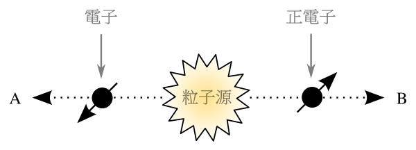 Суть опыта состоит в следующем: источник испускает два фотона в зацепленных состояниях, которые можно описать уравнением . Эти фотоны распространяются в противоположных направлениях вдоль оси , а зацеплены по осям и . Исследователь может измерить одну из компонент (, или ) спина первого фотона, но не больше чем одну за опыт. Например, для частицы 1 мы сделаем измерение по оси и получим таким образом компоненту .