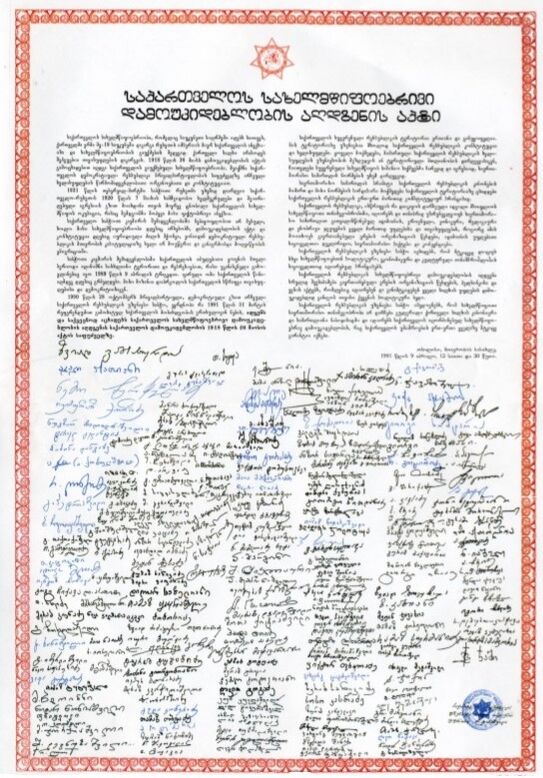 31 марта 1991 года в Грузинской ССР состоялся референдум о восстановлении независимости Грузии, на котором за восстановление государственной независимости Грузии проголосовало 98,93 % участников референдума[65]. 9 апреля Верховный Совет Грузии принял Акт о восстановлении государственной независимости Грузии