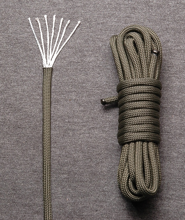 Нити сердечника могут быть извлечены в случае, если требуется тонкая нить, например, при ремонте одежды или в качестве рыболовной лески в экстремальных ситуациях. Нейлоновая оболочка часто используется отдельно, с удалёнными из неё нитями сердечника, когда требуется более тонкий или менее эластичный трос, например, в качестве шнурков для обуви. Концы троса практически всегда оплавляют и обжимают для предотвращения расплетения.