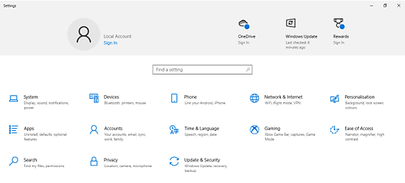 Доступные категории настроек в Windows 10 по состоянию на 2020 год: