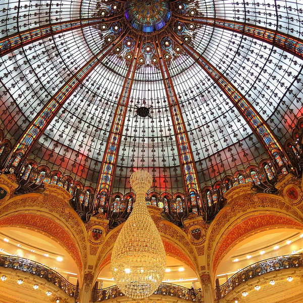 Газовое и электрическое освещение представляли серьёзную пожароопасность для универмагов, поэтому архитекторы новых магазинов делали в них огромные декоративные стеклянные окна в крышах, чтобы заполнить магазины преимущественно естественным светом. Так магазин «Галери Лафайет» на бульваре Осман, законченный в 1912 году, имел прозрачные крыши над дворами с балконами и волнистыми перилами, что придавало интерьерам стиль Рококо, напоминающий эффект дворца в стиле барокко[3].