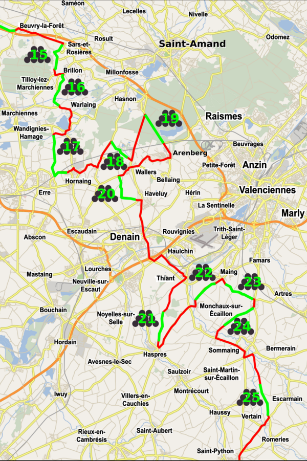 | 15 | 188,2 | Tilloy-lez-Marchiennes > Sars-et-Rosières | 2400 м | |