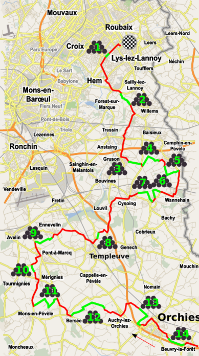 | 14 | 194,5 | Beuvry-la-Forêt > Orchies | 1400 м | |