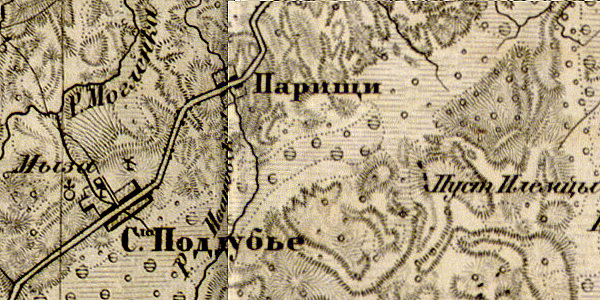 Деревня Парищи отмечена на карте профессора С. С. Куторги 1852 года[6].
