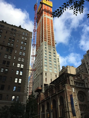 Застройщики планировали строительство здания с 2006 года, но планы были отложены из-за трудностей с освобождением предыдущего коммерческого здания на участке. Впервые о планах по строительству здания было объявлено в декабре 2012 года, когда было выбрано архитектурное бюро Robert A.M. Stern Architects[10]. Вскоре после этого застройщики приобрели 6 500 квадратных метров у соседней Объединённой методистской церкви Христа и клуба Гролье за более чем 40 млн долларов США[11]. Проект здания был официально представлен в марте 2014 года и завершен в 2018 году[12].