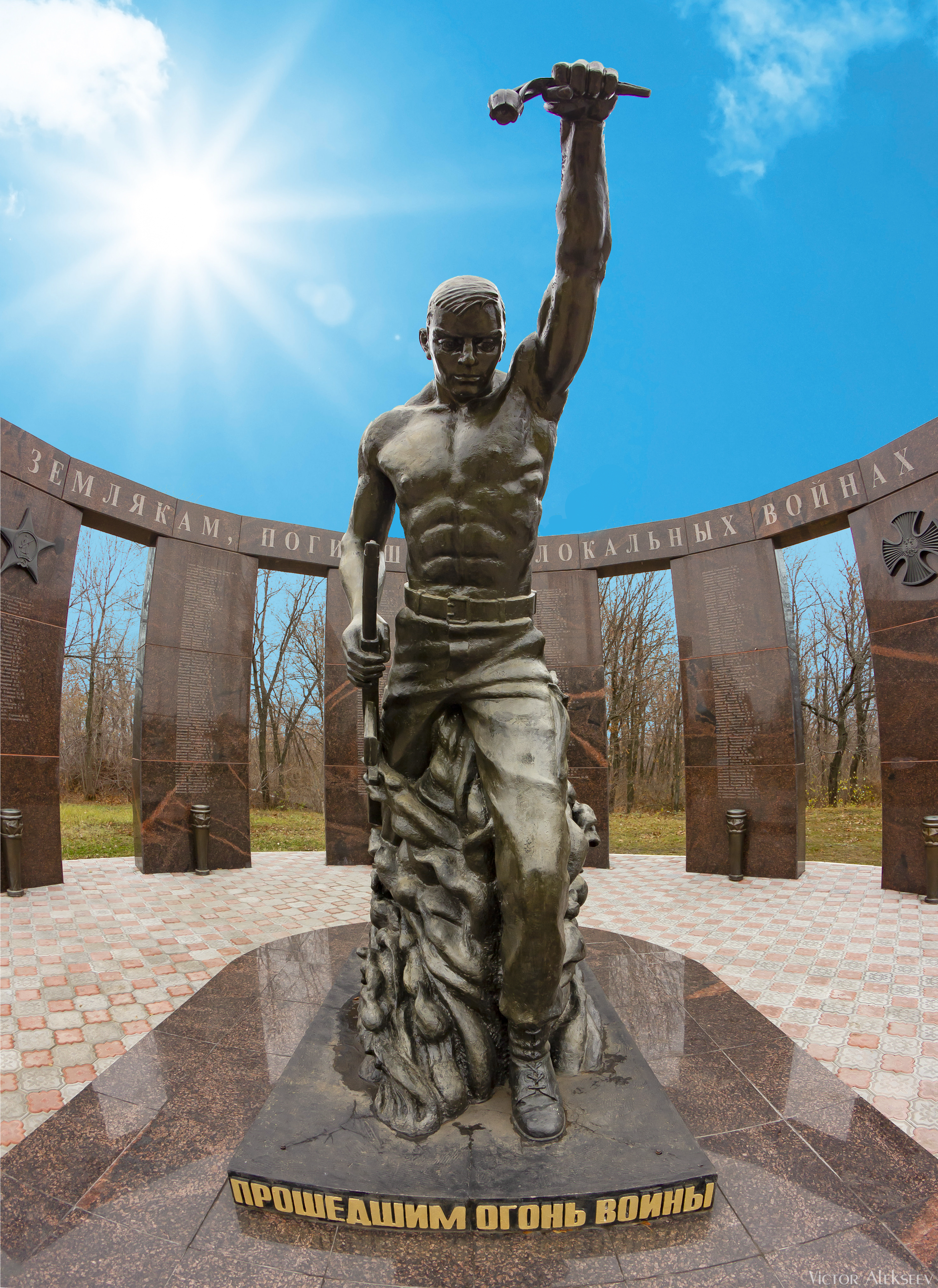 | Памятник землякам, погибшим в локальных войнах. Надпись на основании: «Прошедшим огонь войны». Скульптор Садовский А. А. Торжественное открытие 3 ноября 2009 г.[6] | |
