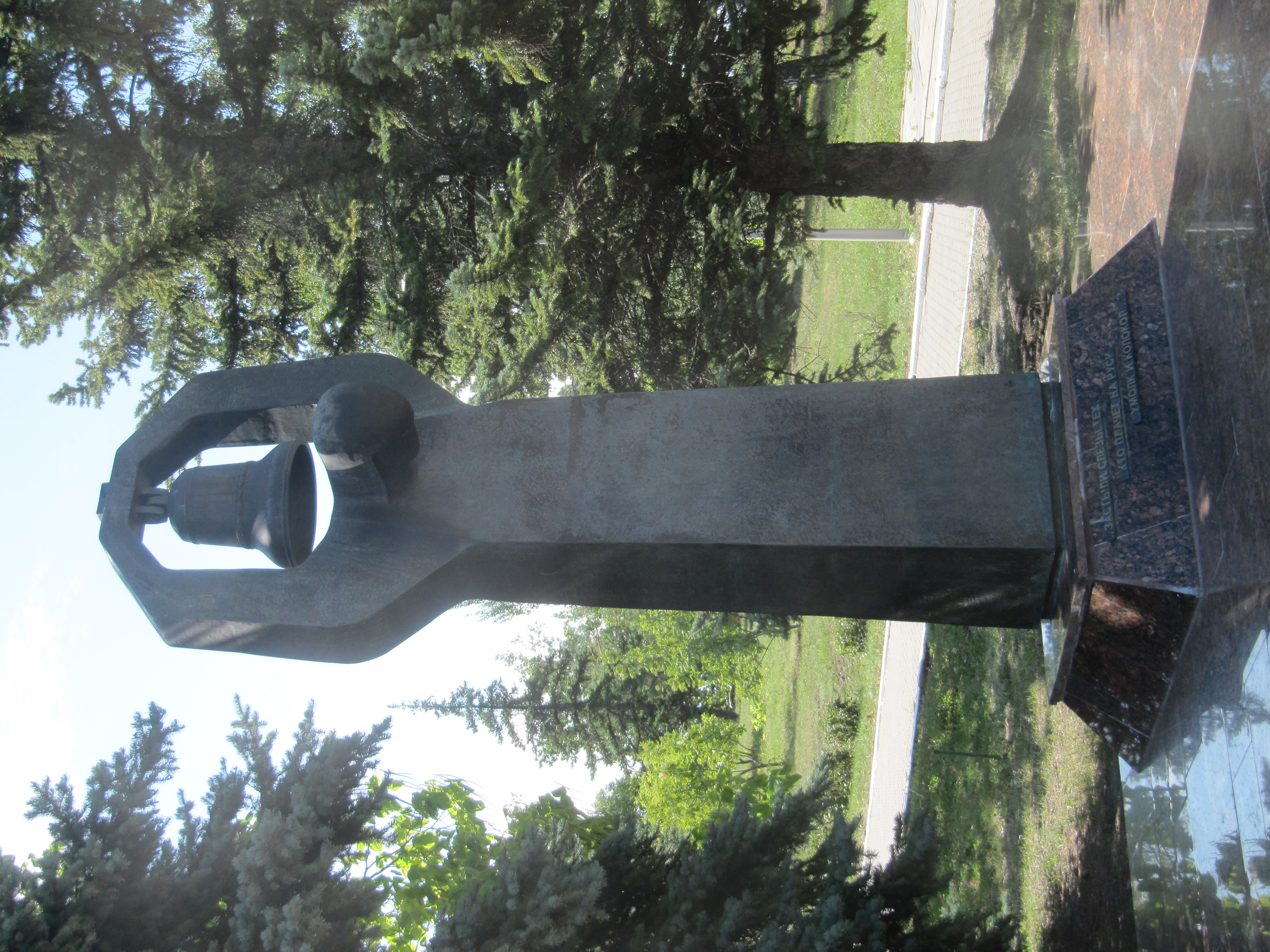 | Молчащий колокол — Памятник павшим на полях сражений. Надпись на монументе: «Застыли слёзы тех, кто плачет на Руси. Умолк и колокол.» Скульпторы — братья Андрей и Сергей Щербаковы. Торжественное открытие 9 мая 2000 г.[3] | |