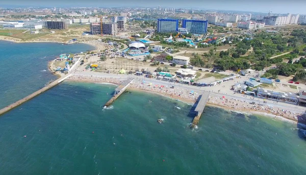 Пляж отделён от набережной балюстрадой. Недалеко находится аквапарк «Зурбаган»[6].