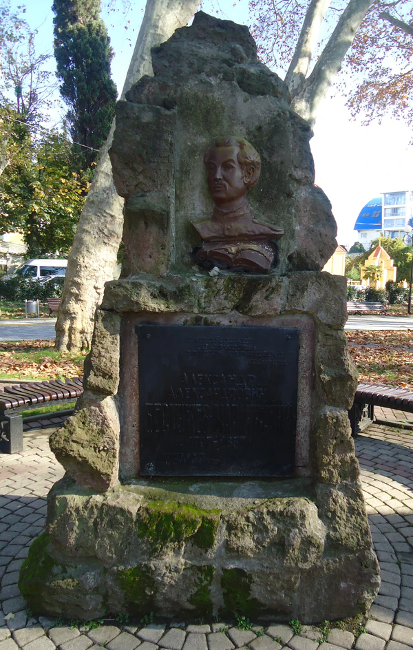 В сквере стоит памятник с бронзовым барельефом декабриста (автор — житель Адлера С. М. Третьяков), воздвигнутый в 1957 на месте гибели поэта.