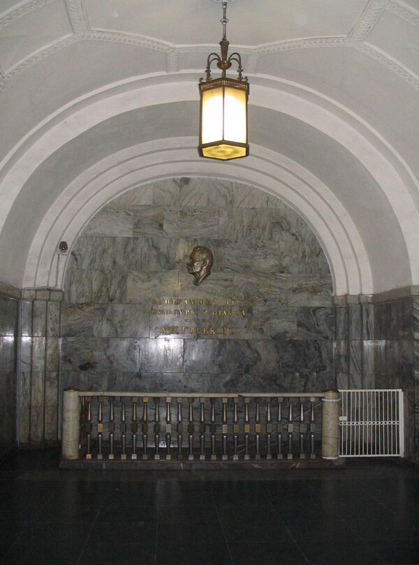 В центральном и боковых залах станции располагались мраморные скамьи, не сохранившиеся до настоящего времени[3]. Центральный зал освещается фонарями шестигранной формы. Пилоны украшают 26 барельефов из белого мрамора работы И. А. Рабиновича[4][5], изображающие отдых советской молодёжи[комм. 1]. 12 барельефов, расположенных в боковых залах, дублируются такими же барельефами в центральном зале. Таким образом, не продублированы только два барельефа. В торце центрального зала расположен барельеф с портретом писателя Максима Горького и надписью «Центральный парк культуры и отдыха имени А. М. Горького»[3]. Потолок декорирован лепным орнаментом.