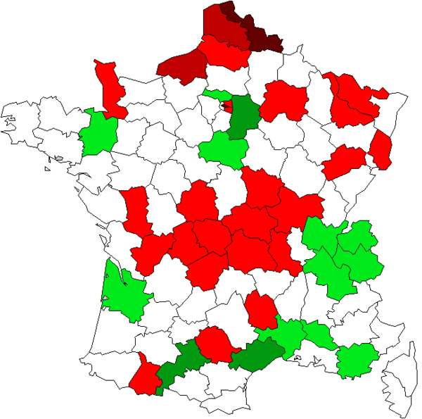 | Национальный фронт (Front national) | FN | 3 528 373 | 13,60% | 0 | 842 684 | 3,66% | 2 | 2 | 0,35% | ||