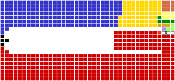 | Мест получено | 356 (▼57) | 198 (▲32) | 62 (▲10) |
