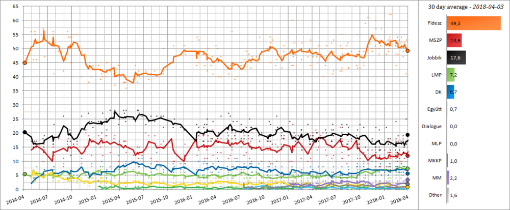 После нескольких месяцев кризиса внутри Фидес с ноября 2014 года, который был отмечен внутренними конфликтами (например, выход из партии бизнесмена Лайоша Шимички) и обвинения в коррупции[8], правящая партия восстановила большую часть своей утраченной поддержки в период кризиса в Европе в течение лета 2015 года, когда премьер-министр Виктор Орбан объявил о строительстве 4-метровой (13 футов), 175-километровой (109 миль) ограды вдоль её южной границы с Сербией[9]. Венгерское правительство также критиковало официальную политику Европейского союза за то, что мигрантов не отговаривали ехать в Европу[10]. Барьер стал успешным, так как с 17 октября 2015 года тысячи мигрантов были ежедневно перенаправлены в Словению[11].