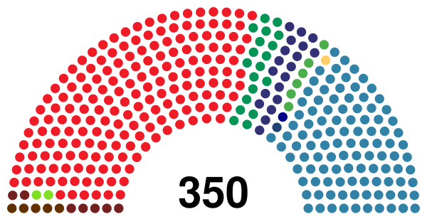 | Прошлые выборы | 202 (48,11 %) | 107 (26,36) | 2 (2,87 %) |