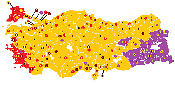 | 10-процентный барьер прошли четыре партии: Партия справедливости и развития, Республиканская народная партия, Партия демократии народов, Партия националистического движения. | |||