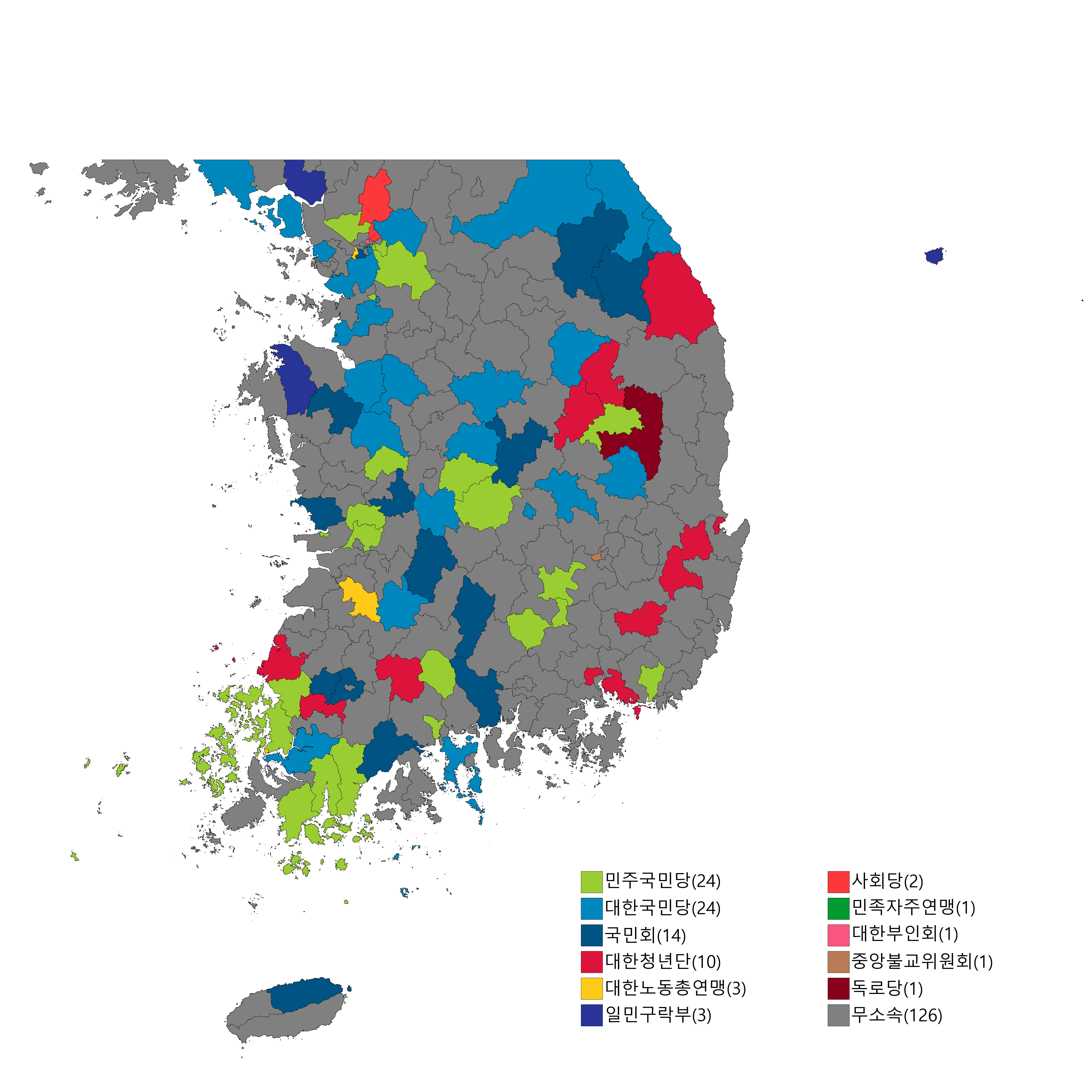 | Корейская националистическая партия | 677 173 | 9,7 | 24 |